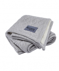 This cozy knit blanket turns a house into a home. Perfect for bundling up in the cold winter months, it will be your new favorite. A nylon/wool blend gray knit on one side, with faux polyester lambswool on reverse.
